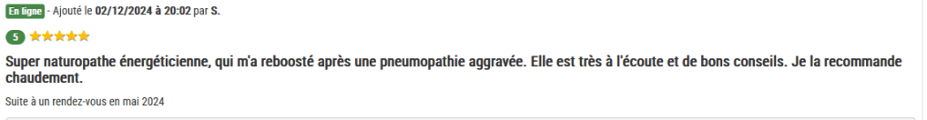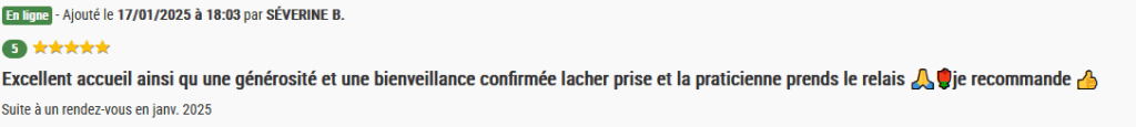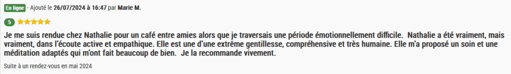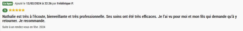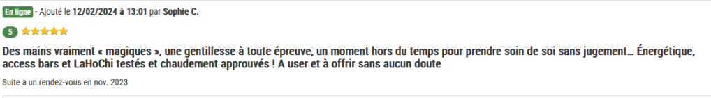 Ayant clôturé mon compte de réservation en ligne, je vous ai copié coller quelques avis … Je ne vous les mets pas tous, car plusieurs sont redondants, mais cela vous donne une idée de ce que les gens pensent de ma prise en charge.